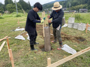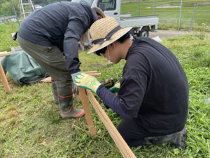 そして2日目、3日目はYoshitake村御杖にきていただき、農小屋づくりを行いました。