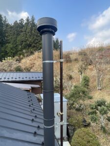 先日、Yoshitake村御杖の薪ストーブの煙突延長工事をしてきました!!