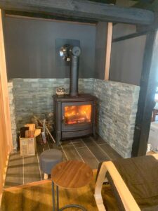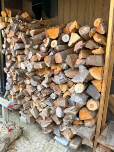 着いて一番に薪ストーブをつけました。薪のストックは準備万端です。