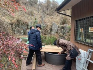 露天風呂はまるいち本店様で購入した信楽焼の浴槽を使用しています。