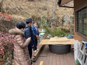 こんにちは! 総務部の吉田です。3月7日に開催いたしました第41回「Yoshitake村御杖 内覧会&古民家物件探索ツアー」は、寒の戻りで肌寒さもありましたが、梅の香りに春の訪れを感じつつ無事に開催することができました。 当日は1組2名の方にご参加いただきました。お越しいただきありがとうございました。 弊社の古民家LIFEのHPもご覧くださっており、物件についてもよくご存じで、御杖村へは空き家バンクを通じて訪れたこともあるとのこと。御杖に興味をもっていただけていることが嬉しかったです。今回の古民家ツアーでは、初めて赤目グリーンビレッジ内の別荘もご案内することができました。 実際に現地をご覧いただくことで、家の周りの環境や写真では分からない点を確認出来て良かった、改修費用について聞けて不安が軽減した、などのご感想もいただきました。 そして、弊社の物件の一つに強く興味を持ってくださり、構想やプランについてお話が尽きることなく、とても楽しい時間となりました。 まずは二拠点生活を視野に、4匹のワンちゃんがのびのび走り回れる環境で過ごす暮らしを思い描いておられ、その実現に向けて私たちもお手伝いさせていただければと思っております。次回の開催は5月を予定しております。新緑が美しい季節の古民家の雰囲気を、ぜひ楽しんでいただければと思います。古民家や田舎暮らしにご興味がある方は、ぜひご参加ください。定員に達した場合は募集を締め切らせていただくことがありますので、告知開始後はお早めにご予約ください。皆さまにお会いできるのを楽しみにしております。