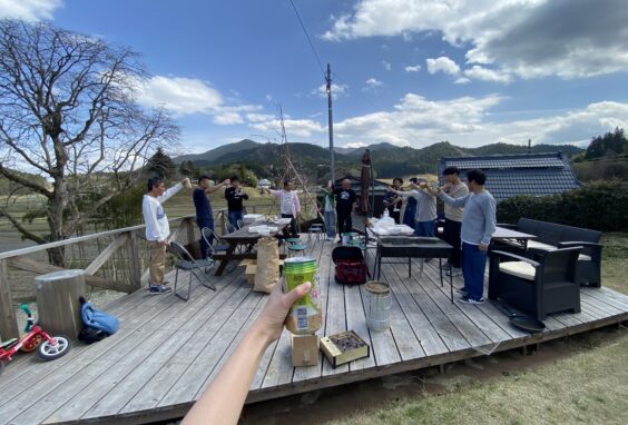 こんにちは! 営業部 山本です! 4月7日(日)に、お花見BBQを開催しました! 天気予報を確認するとあいにくの雨予報。。。 せっかくウッドデッキがあるのに、屋内開催も検討していましたが 2日前くらいに晴予報に!!!!当日は暑いくらいの晴れでお花見BBQが開催できました☺️❤️ 主役のYoshitake桜もポツポツと咲き始めていました? 株式会社荻田建築事務所の方々をお招きし、一緒にお花見を楽しみました☺️ 良い天気、良い景色、鳥や虫の声に癒されながら、 お酒とお肉で大盛り上がり!!!! 近くに、住宅が無い為、外でどれだけ騒ごうが苦情は来ません(笑) レクリエーションでは、 【タケノコニョッキ】や【ほうれん草ほうれん草】や【いろとり忍者】 で、大騒ぎ!! 酔ってるおじさんには難しいぞ!!!!とクレームもきましたが、 どのゲームもハマり、もう一回!!!もう一回やろ!!!とノリノリ??? 本当に楽しい一日でした☺️☺️