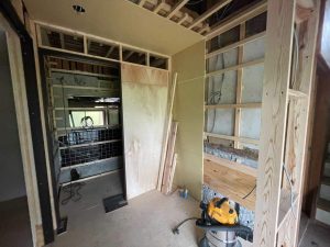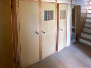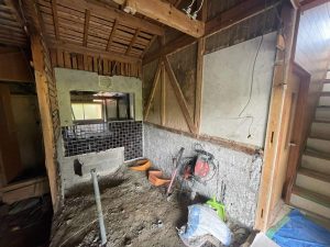お風呂、小便器、洋式トイレがあったところを解体し、洋式トイレと洗面所に変化しました。