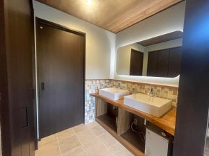 古民家の雰囲気に合わせつつ、清潔感のある明るい洗面室になりました?