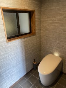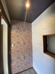 元々お風呂場があったところを解体し、おしゃれなアクセントクロスのトイレへと変化させました!
