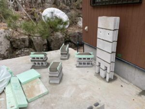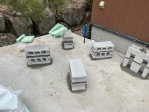 こちらの露天スペースは、ウッドデッキを張るので、そちらの高さも考慮しながら積み上げていきます。