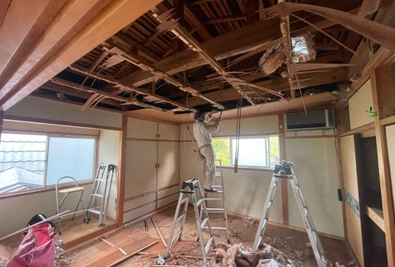 こんにちは!今回、事業再構築補助金を使って新事業を始めるにあたり、Yoshitake村第2号となる、Yoshitake村御杖の改修工事が始まりました!▽補助事業についてはこちらhttps://kansai-kominka.yoshitake.ne.jp/?post_type=information&p=166&preview=true現在は、写真右側の増築された部分の改修工事を行っております。増築部分は、そこまで老朽化は進んでいなかったため、1階はそのまま事務所として使用し、2階は宿泊施設にするため内装工事を行っております。 工事様子を覗き見?✨ まずはbeforeの写真から… 階段上がって正面に小便器のトイレがあり、その両側に和室が計2部屋ありました。 現在着々と工事が進んでおり、 天井・床・トイレ部分を解体しました。壁はほぼ残しています。 現在は、造作工事を御杖村の地元大工さんが行っております!天井を作り直して、照明などを新たに設置します。また、こちらの建物は、コンセントを増設しており、至る所に露出された線が張り巡らされていたので、そちらも改善させています。北側は洋室に、南側は和室にする予定で、扉も引違戸から鍵付きの片引き戸にする予定です。2階は宿泊用のスペースのため、小便器は撤去し、簡易な手洗いを設けます。弊社の若い女性社員が、ちょっと変わった面白いクロス(壁紙)を選定中です!完成がとっても楽しみです?ちなみに… 1階部分はこんな感じです めちゃめちゃ綺麗でした…?最新工事進捗状況はInstagramからご覧ください!https://www.instagram.com/yoshitakemura_kominka/▽セミナー・体験会情報はこちらからhttps://kansai-kominka.yoshitake.ne.jp/event/▽物件情報はこちらhttps://kansai-kominka.yoshitake.ne.jp/property/