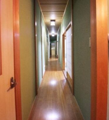 旅館みたいな長い廊下です