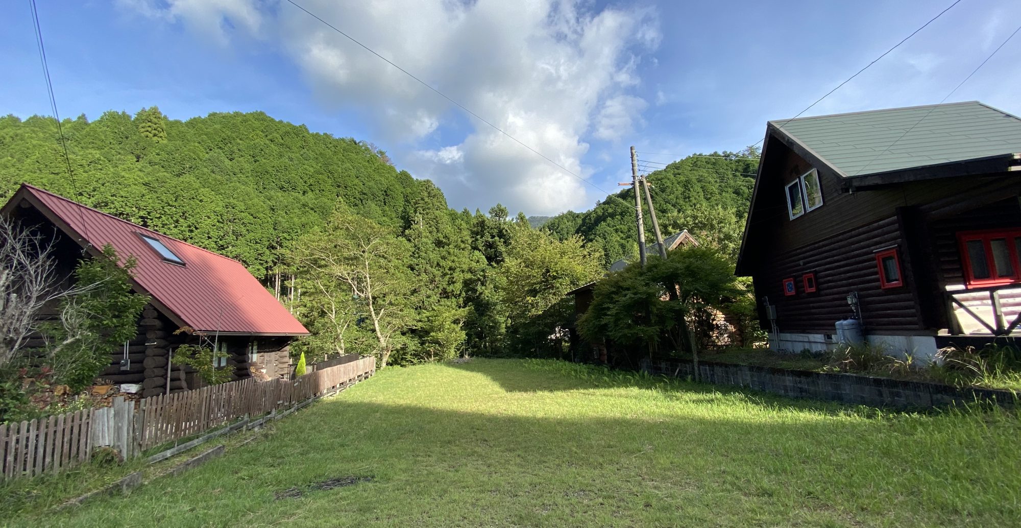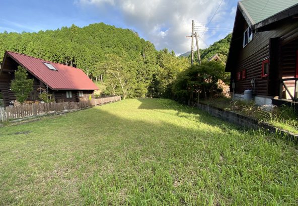 奈良県東部にある吉野郡東吉野村の土地です。美しい清流と、深い山々に囲まれた自然あふれる別荘地内にある分譲地になります。敷地の東側にはとてもきれいな清流平野川が流れており、渓流釣りや川遊びも可能な地形となっています。別荘地内には点々とログハウスが建てられています。123坪の広さに、四角く高低差の無い土地の為、建物のプランニングがしやすいと思います!弊社のオススメプランでは東側の川が見えるところでBBQスペースを設けて、1段下がった場所に露天風呂を設置しております。