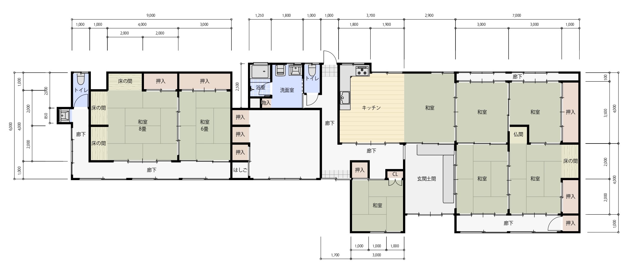 母屋には和室6部屋とキッチン、そして大きな縁側がありゆったりとした時間が流れます。