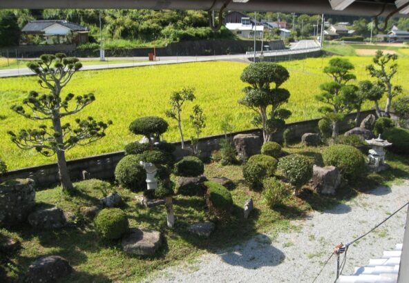 母屋2階からの庭と道路