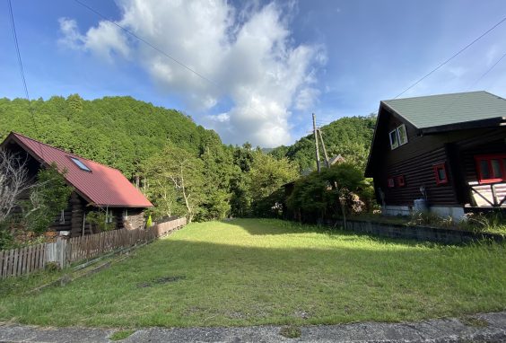大きな別荘地内に広々ウッドデッキを備えた未入居ログハウス
